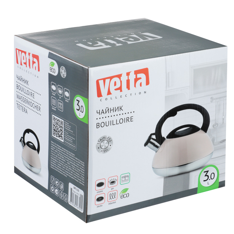 Чайник "Роншан" от VETTA объемом 3 л - отличный помощник на вашей кухне! Подходит для всех видов плит, включая индукционные. Это качественный и стильный чайник, который отлично подойдет для приготовления горячих напитков в домашних условиях. Чайник выполнен из нержавеющей стали, которая обеспечивает долговечность и надежность использования. Чайник бежевого цвета, он отлично впишется в любой интерьер. Важно отметить, что чайник VETTA оснащен индукционным дном, что позволяет быстро и рав