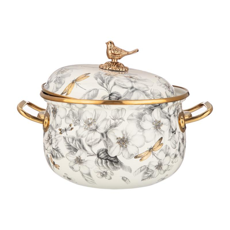 ARTI-M КАСТРЮЛЯ ЭМАЛИРОВАННАЯ AGNESS С КРЫШКОЙ, СЕРИЯ APPLE GARDEN 2,8Л, ДИА.18СМ ПОДХОДИТ ДЛЯ ИНДУК