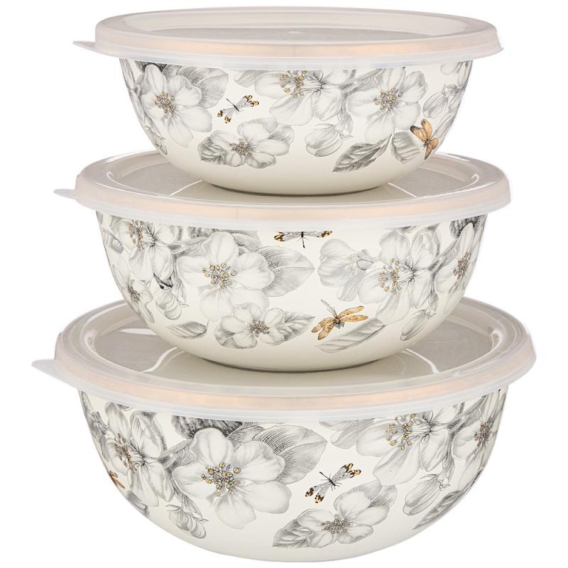 ARTI-M НАБОР МИСОК AGNESS ЭМАЛИРОВАН. С ПЛАСТИК.КРЫШКАМИ, СЕРИЯ APPLE GARDEN, 6ПР. 14/16/18СМ, 0,6/0