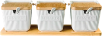 LENARDI Набор из 3 банок 350 мл с ложками на подставке BAMBOO в под.уп.(х12)Фарфор,бамбук