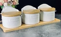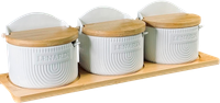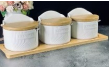 LENARDI Набор из 3 банок 420 мл с ложками на подставке BAMBOO в под.уп.(х8)Фарфор,бамбук