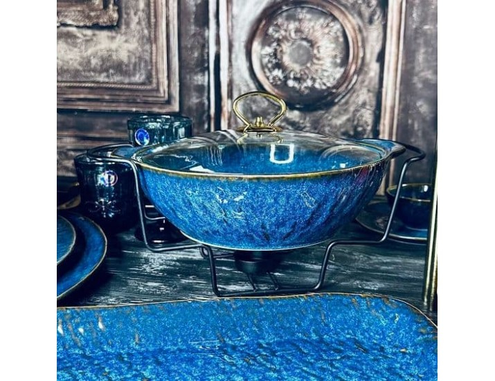 LENARDI Сервировочный мармит с крышкой 30,5х9см 2,3л AQUAMARINE на подставке в под.уп.(х4)Фарфор