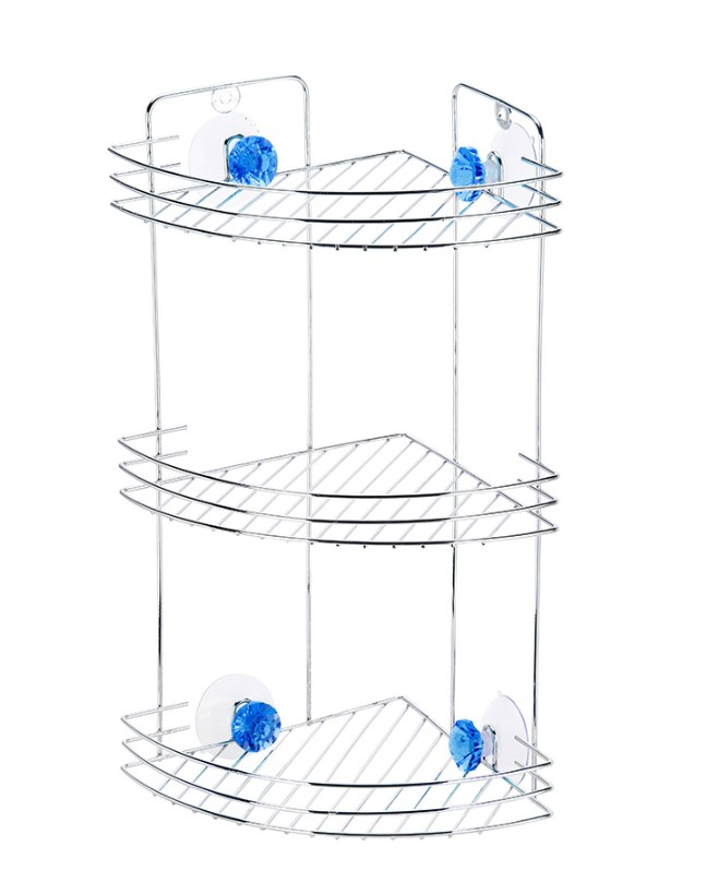 СКР Полка угловая трехъярусная W2672С "Бриллиант, синий", размер:19*19*40см (крепление:присоски, шур