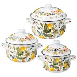 ARTI-M НАБОР КАСТРЮЛЬ AGNESS ЭМАЛИРОВАННЫХ СЕРИЯ "ФРУКТОВАЯ КОРЗИНА", 6ПР. 1,5/2,8/3,6Л,16Х10/20Х12/