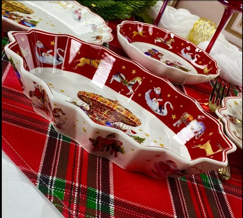 LENARDI НОВЫЙ ГОД Глубокое круглое блюдо 23.5х16.5х5см в под.уп.(х48)Фарфор