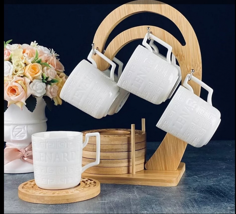 LENARDI Кофейный набор 12пр. 130мл на подставке BAMBOO в под.уп.(х12)Фарфор