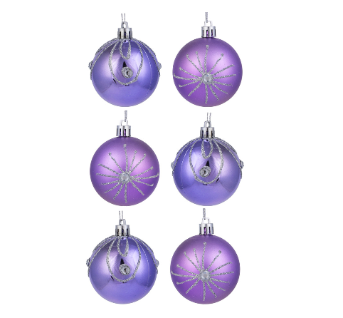 СНОУ БУМ Набор шаров 6x6 см, лавандовый, пластик