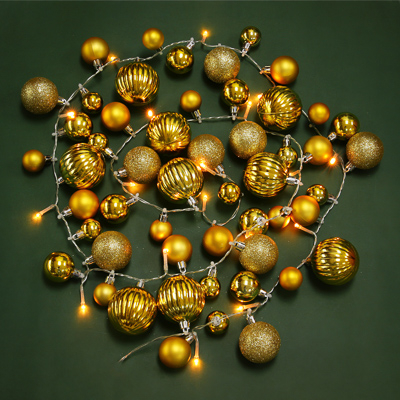 VETTA СНОУ БУМ Гирлянда эл. декоративная из шаров, 5 LED, 281см, 1 реж, 3xААА, золотой, пластик