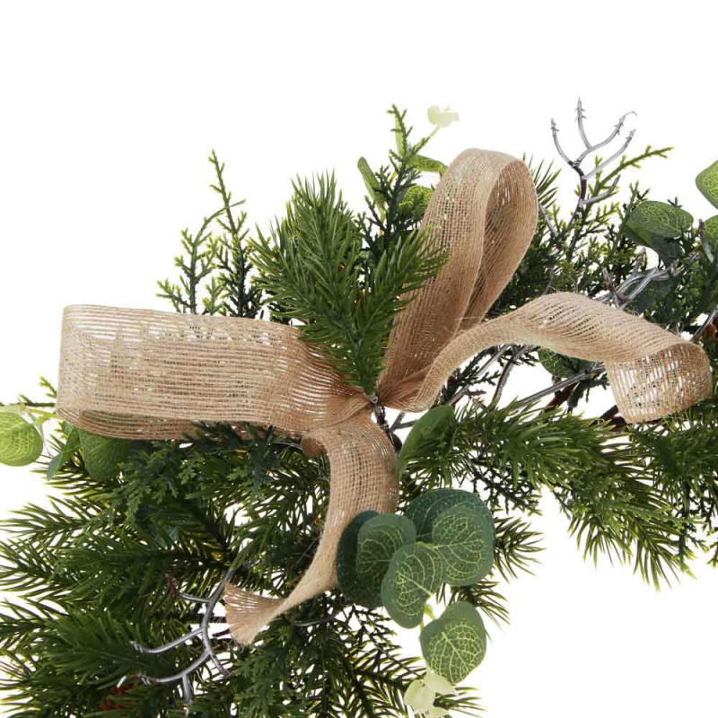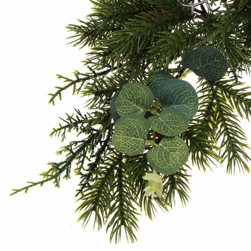 Хвойное украшение от СНОУ БУМ размером 60x10x23 см обязательно придется вам по вкусу! Декор в виде шикарного банта выглядит очень изысканно на фоне темно-зеленых насыщенных веточек. Упругие иголочки великолепно удерживают форму, чтобы вы и все ваши гости могли наслаждаться непревзойденным качеством и красотой этого потрясающего украшения!