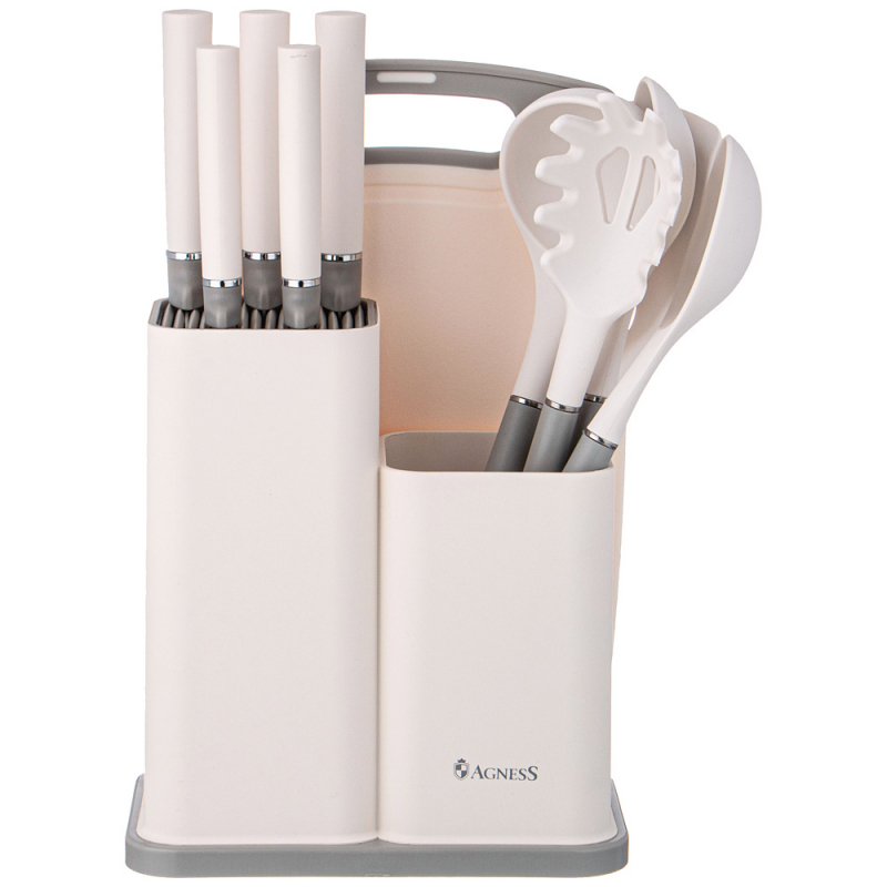 ARTI-M НАБОР AGNESS ИЗ 12ПР: 5 НОЖЕЙ,ДОСКА,ПОДСТАВКА,ПОЛОВНИК,ЛОЖКА,ЛОПАТКА,ШУМОВКА,ЛОЖКА ДЛЯ СПАГЕТ