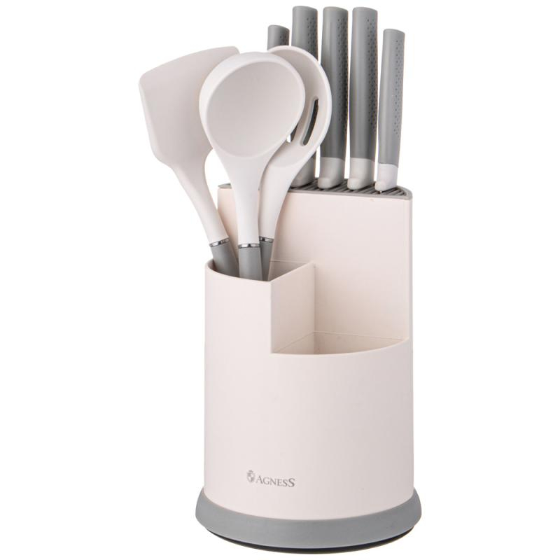 ARTI-M НАБОР AGNESS ИЗ 9ПР: 5 НОЖЕЙ, ПОЛОВНИК, ЛОПАТКА И ШУМОВКА, ПОДСТАВКА, ЦВЕТ: СЕРЫЙ