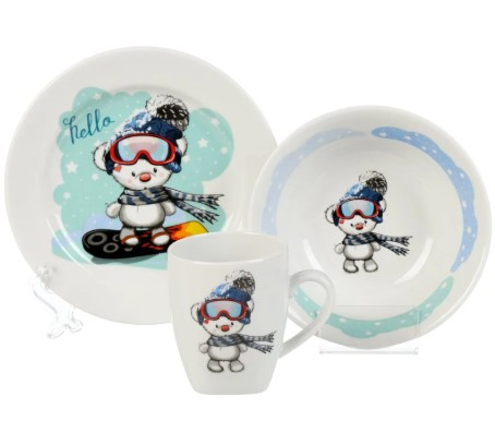 СП Набор детской посуды фарфор, 3 шт, Сноубордист, тарелка 17.5 см, салатник 360 мл, кружка 210 мл,