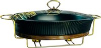 LENARDI Овальный сервировочный мармит 38см с крышкой WOOD на подставке в под.уп.(х4)Фарфор