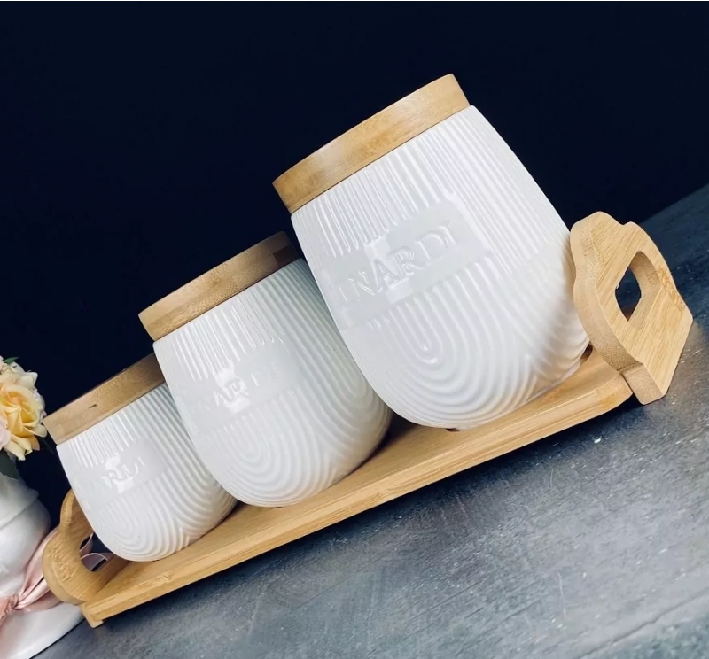 LENARDI Набор из 3 банок 1000/600/320мл на подставке BAMBOO в под.уп.(х8)Фарфор
