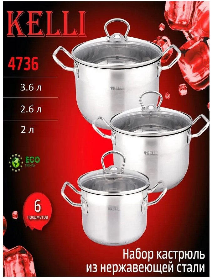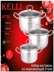 Kelli Набор Кастрюль из 6-и предметов 2,6/3,6/2 л