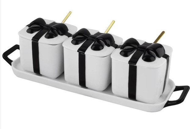 LENARDI Набор из 3 баночек 350 мл с ложками на подставке MULTICOLOR в под.уп.(х12)Фарфор