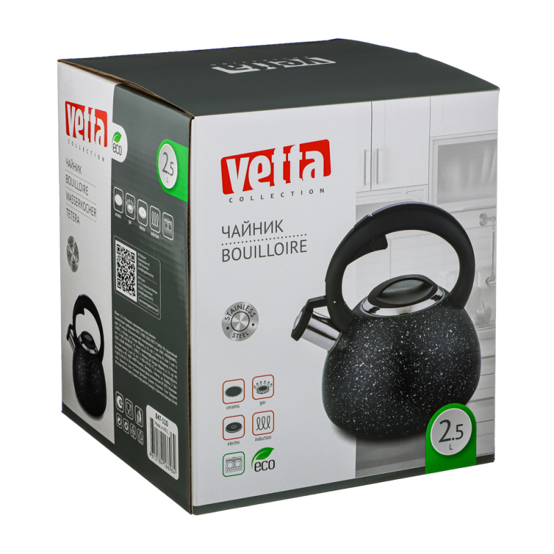 Чайник "Гаро" от VETTA объемом 2,5 л - отличный помощник на вашей кухне! Подходит для всех видов плит, включая индукционные. Это качественный и стильный чайник, который отлично подойдет для приготовления горячих напитков в домашних условиях. Чайник выполнен из нержавеющей стали, которая обеспечивает долговечность и надежность использования. Дизайн чайника очень эффектный, благодаря чему он станет ярким элементом интерьера кухни. Важно отметить, что чайник VETTA оснащен индукционным дно