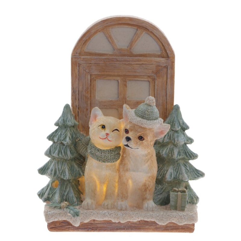 РЕМЕКО Фигурка декоративная с подсветкой "Кошечка и песик", L13 W8 H16 см