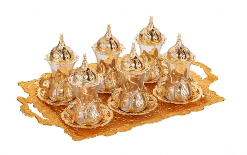 Набор чайный медный на 6 персон 100 мл. "Gold" (Турция)