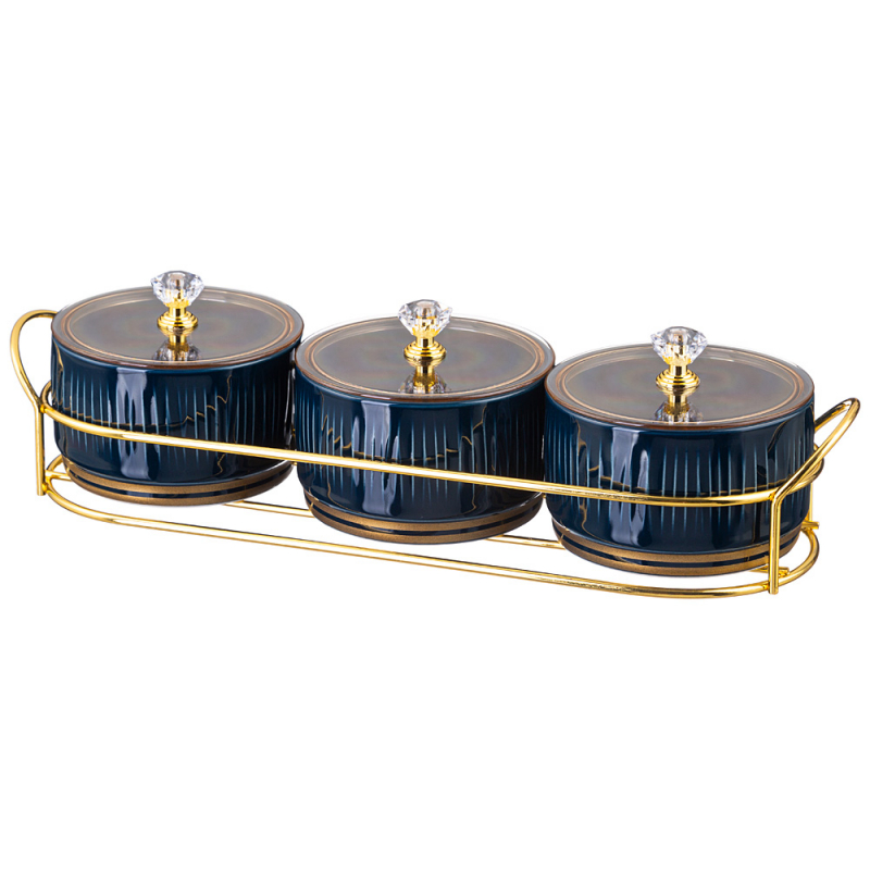 ARTI-M НАБОР БАНОК LEFARD "HERBAL" С ПЛАСТИК. КРЫШКОЙ 3 ШТ. 230 МЛ НА МЕТАЛЛ. ПОДСТАВКЕ СИНИЙ (КОР=2