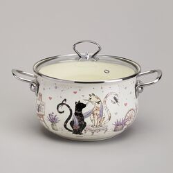 ARTI-M КАСТРЮЛЯ AGNESS ЭМАЛИРОВАННАЯ СО СТЕКЛЯННОЙ КРЫШКОЙ СЕРИЯ "LAVANDER CATS", 3,8 Л ДИА. 22СМ