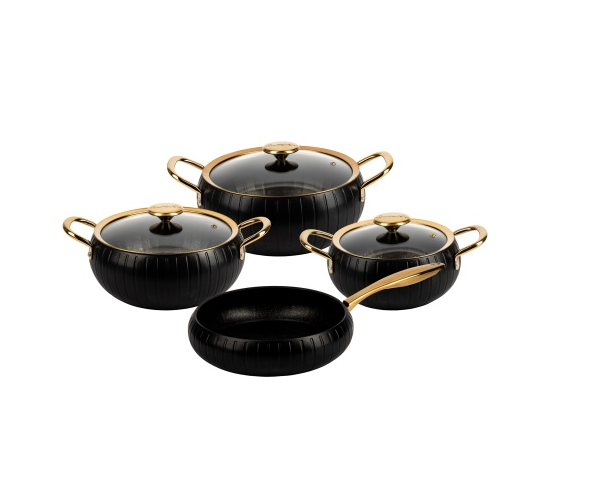 OMS Набор с АПП 7 (4/3) предмета цв.черный с золотыми ручками 3528-Bk-Gd