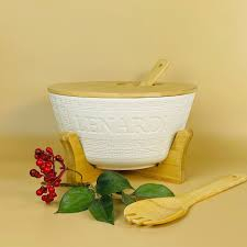 LENARDI BAMBOO Набор салатник 25см. с 2 ложками на подставке в под.уп.(х8)Фарфор