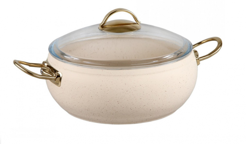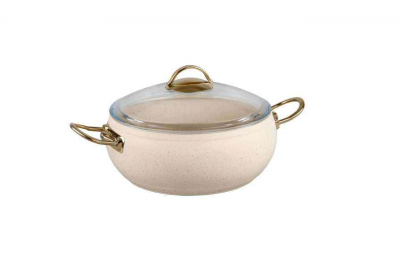 OMS Кастрюля цвет айвори ИНДУКЦИЯ с крышкой стеклянной 18х8 см (2 л) с АПП, арт. 3141-IND-IVR-18