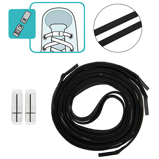 СКР Шнурки с магнитным фиксатором плоские эластичные, цвет черный