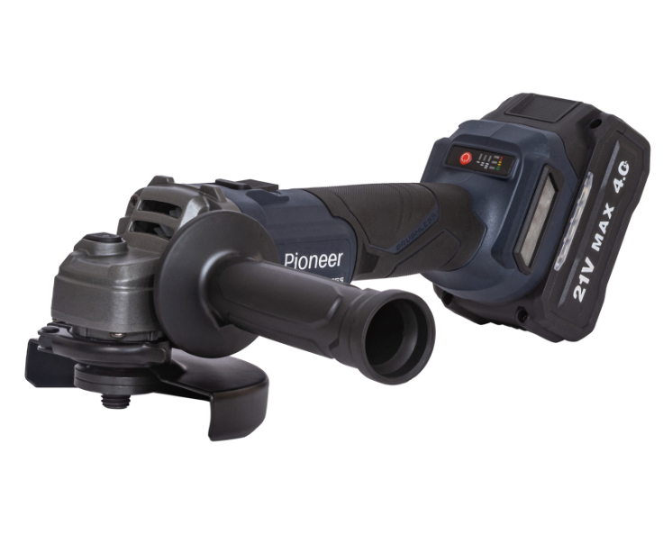 УШМ Pioneer АКУМ. AG-E20V-125-01B, 21В 4000мАч бещеточный D 125
