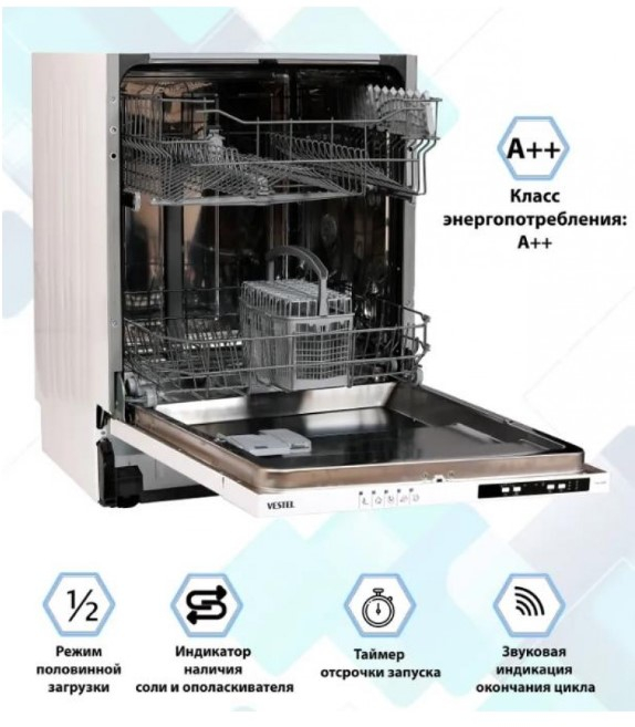 Посудомоечная машина VESTEL Bojena DW 633 EB бежевый мрамор 13комплектов,кноп.управ 820х550х598 мм