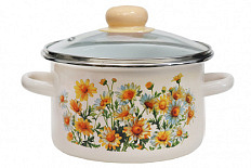 Кастрюля эмал цил Ромашки 2,0л стекл/кр мет/об