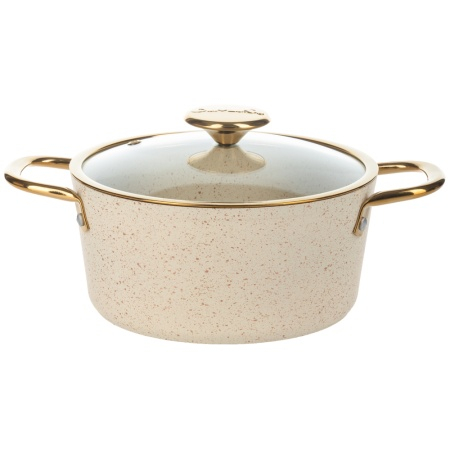 OMS Кастрюля цвет айвори с АПП 5,5 л (26х12,5 см), крышка стекл. с метал. ободком, арт 3116-G-26-IVR