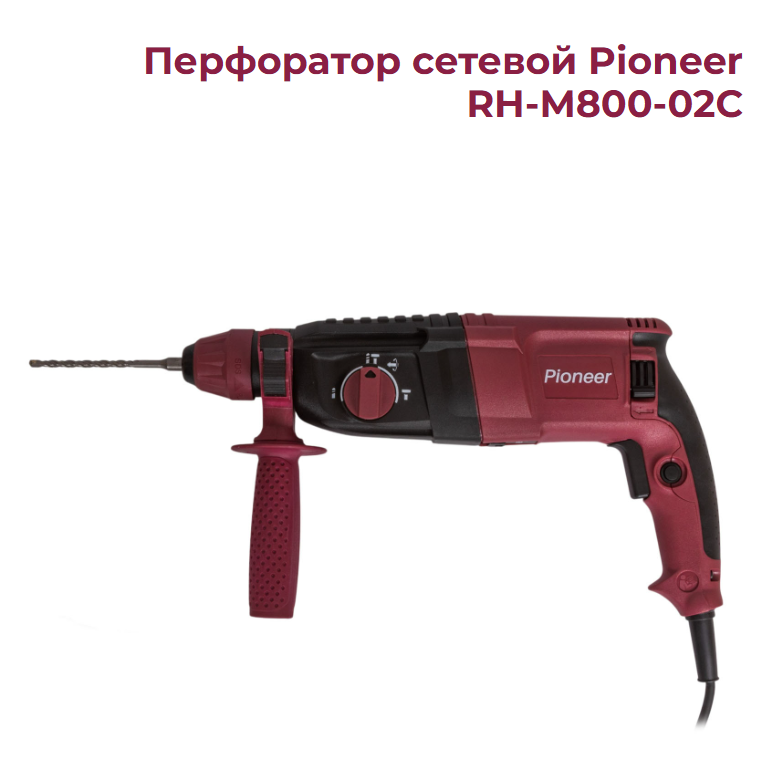 Перфоратор Pioneer RH-M800-02C 800Вт, горизонт., SDS plus, 3 Дж, 4 режима.