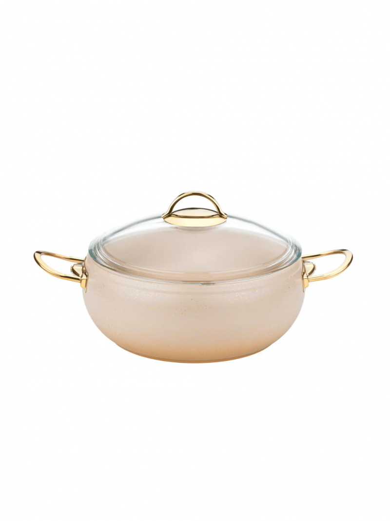DLK Кастрюля цв. кремовый/золотой с крышкой стеклянной 18x8 см (2 л) с АПП,, арт. 3000-CRM/GD-18