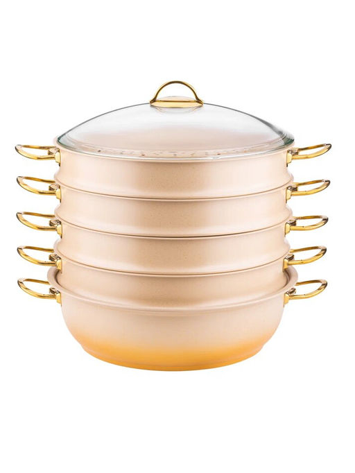 DLK Мантоварка цвет: кремовый/золотойс крышкой стеклянной 30х10 см (6,4 л) с АПП, , арт. 4000-CRM/GD