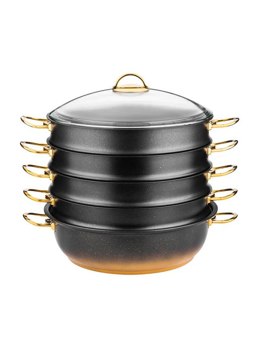 DLK Мантоварка цвет: черный/золотой с крышкой стеклянной 32х10 см (7 л) с АПП, арт. 4000-BK/GD-32.