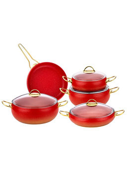 DLK Набор посуды с АПП из 9 (5/4) предметов, крышки стеклянные, цвет: красный/золотой
