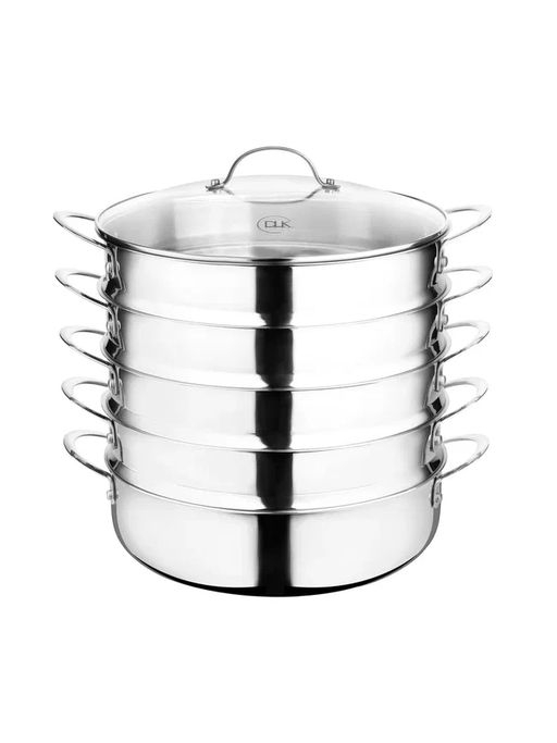 DLK Мантоварка с крышкой стеклянной 30х9 см (4.8л) из нерж. стали (3-х сл), цвет:серебристый, 4500-3