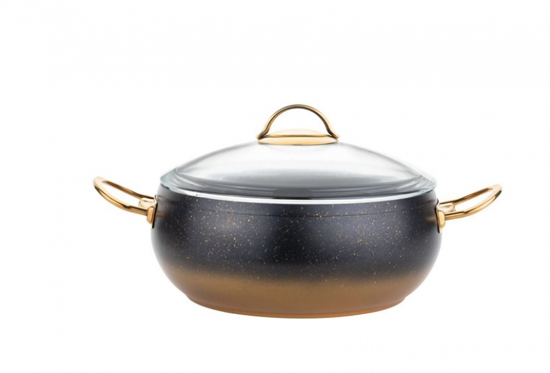 DLK Кастрюля цв. черный/золотой с крышкой стеклянной 24х10,5 см (4,5 л) с АПП, арт. 3000-BK/GD-24