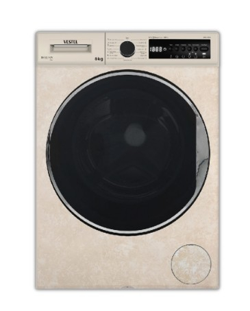 Стиральная машина VESTEL Bojena WMS 6100 T2G мрамор-беж,6кг,1000об,черный люк 597х416х845