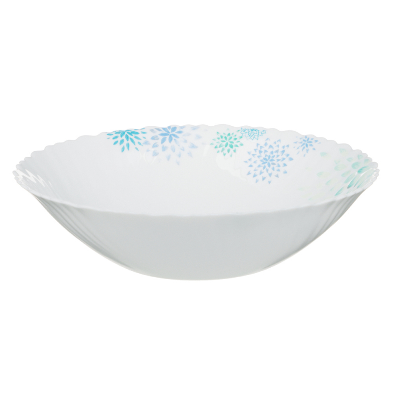 Салатник из опалового стекла 24 см MILLIMI «Асиано» – это эстетичная посуда из высокопрочного стекла для подачи салатов, бутербродов и других закусок на праздничный или повседневный стол. Белая посуда с цветочным рисунком впишется в любой стиль сервировки, будет выразительно и гармонично смотреться на фоне белой или цветной скатерти. Изделие устойчиво к образованию сколов и царапин, легко моется, не темнеет с течением времени, поэтому прослужит долго.