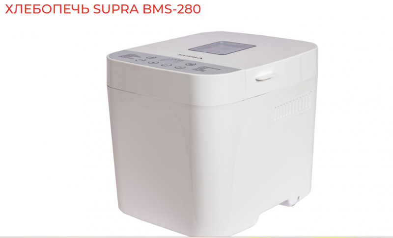 Хлебопечь SUPRA BMS-280, (650 Вт 12 программ 1 тестомес таймер 13ч)