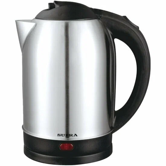Электрический чайник Supra KES-1821 в серебристом и черном цвете, объем 1.8 литра, мощность 1500 Вт, корпус выполнен из металла.