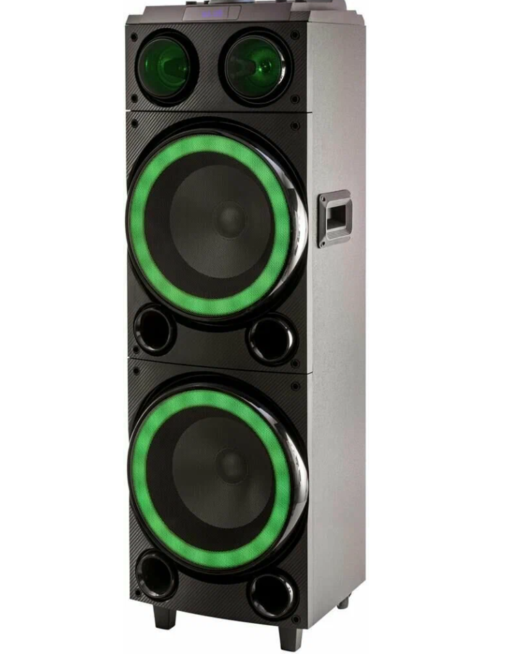 Максимальная мощность:1000 Вт RMS (мощность): 150 Вт Корпус: МДФ Подсветка: 7-цветная RGB Микрофон: проводной, в комплекте. Форматы воспроизведения музыкальных файлов: MP3, WMA, FLAC, WAV, APE, AAC Функции: Bluetooth, FM-тюнер, TWS, караоке. Пульт дистанционного управления: полнофункциональный. Входы для подключения микрофона:2. Регулировка: низких и высоких частот. Эффекты: эхоэффект канала микрофона. Разъёмы: USB, TF. Вход: двухканальный линейный. Питание: ~100–240 В, 50–60 Гц. Аккумулятор: встроенный, 12 В, 7000 мАч. Основные характеристики Бренд AIWA Тип мидисистема Полная выходная мощность (RMS) 150 Вт