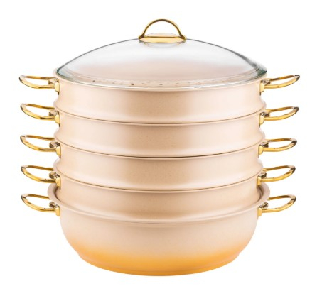 DLK Мантоварка с крышкой стеклянной 34х10 см (8 л) с АПП, цвет: кремовый/золотой,