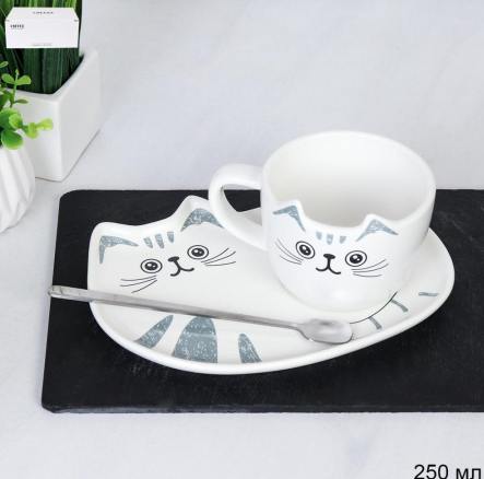 Чайный набор 220 мл 3 предмета с ложкой Котик / 10-222-Set3 /уп 36/