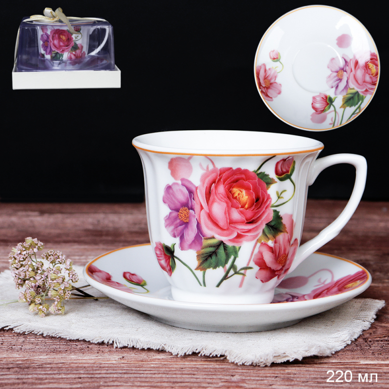 Чайный набор 2 предмета 220 мл / PV-7486 /уп 36/ (10702070/110225/5057731, Китай)