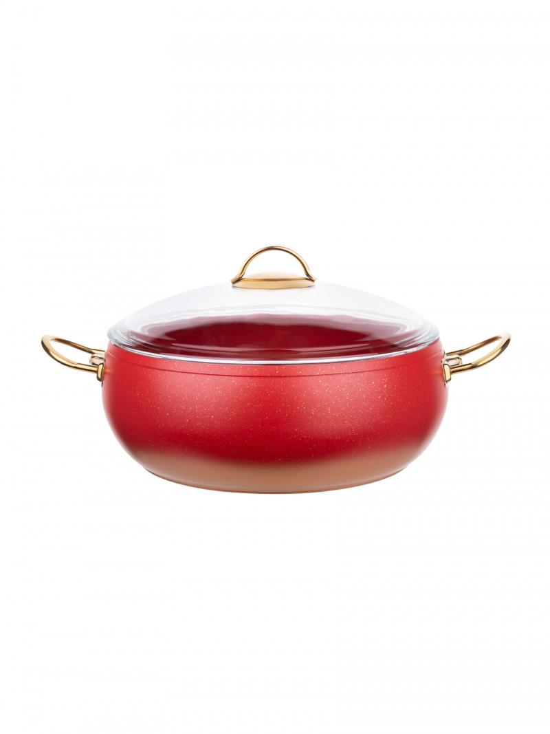 DLK Кастрюля цв. красный/золотой с крышкой стеклянной 28х11,5 см (6,6 л) с АПП, арт. 3000-RD/GD-28