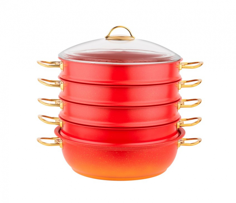 DLK Мантоварка с крышкой стеклянной 34х10 см (8 л) с АПП, цвет: красный/золотой, арт.4000-RD/GD-34.